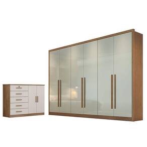 Guarda Roupa Casal Livorno com Nicho e Cômoda Seul Cumaru 25 Fendi - Novo Horizonte