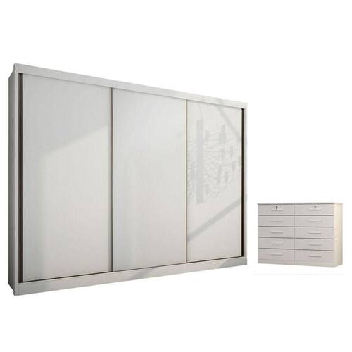 Para que seu quarto fique mais bonito e funcional, apresentamos esse conjunto composto pelo guarda roupa da linha Londres e a cômoda da linha Milão fabricado pela horizonte. O guarda roupa possui amplo espaço interno, gavetas, prateleiras. O gaveteiro possui 10 gavetas equipadas com corrediças telescópicas trazendo suavidade ao abrir e fechar. Aproveite e garanta já o seu