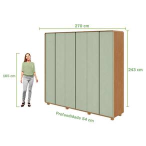 Guarda Roupa Casal Loop 6 Portas Amêndoa Clean Sálvia com Pés ? Lopas