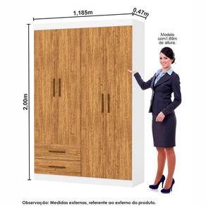 Guarda Roupa Casal Lu 4 Portas 2 Gavetas Carioca Móveis Branco Cinamomo