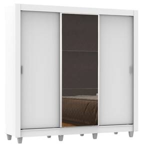 - Itens inclusos: 3 prateleiras totalizando 5 nichos, 2 gavetas internas, 1 cabideiro grande, 3 portas de correr sendo 2 de madeira com puxadores em PVC e 1 com espelho, 1 Kit com 8 pés em PVC