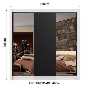Medidas totais do armário: 205 cm de altura x 170 cm de largura x 46 cm de profundidade.