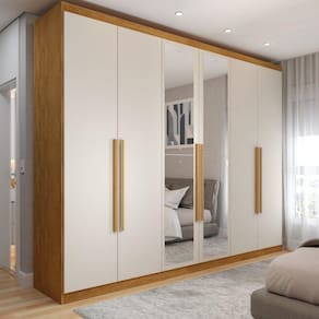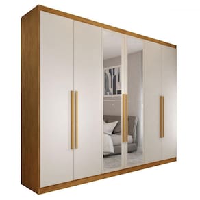 Guarda-Roupa Casal Madalena 6 Portas 6 Gavetas 100% Mdf com Espelho Peroba/Off White - Panorama Móveis - Bege