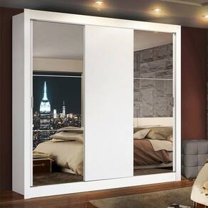 Guarda-roupa Casal Madesa Lyon 3 Portas de Correr com Espelhos 2 Gavetas Branco