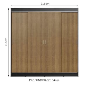 Medidas totais do guarda-roupa: 218 cm de altura x 215 cm de largura x 54 cm de profundidade.
