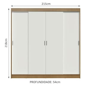 Medidas totais do guarda-roupa: 218 cm de altura x 215 cm de largura x 54 cm de profundidade.
