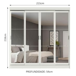 Medidas totais do guarda-roupa: 218 cm de altura x 215 cm de largura x 54 cm de profundidade.