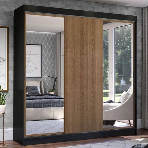 Itens inclusos: - Três (3) portas de correr com sistema anti-descarrilhamento, sendo duas delas com espelhos - Dois (2) puxadores em alumínio com detalhes em PVC - Três (3) gavetas internas com corrediças metálicas - Dois (2) cabideiros em alumínio