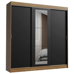 Guarda-Roupa Casal Madesa Kansas 3 Portas de Correr com Espelho 3 Gavetas - Preto
