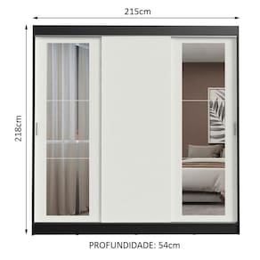 Medidas totais do móvel: 218 cm de altura x 215 cm de largura x 54 cm de profundidade.