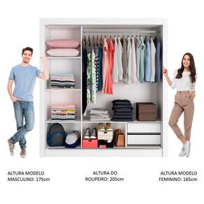 Medidas totais do armário: 205 cm de altura x 170 cm de largura x 46 cm de profundidade.