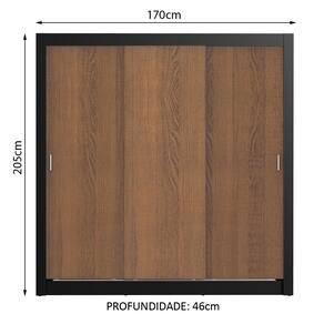 Medidas totais do armário: 205 cm de altura x 170 cm de largura x 46 cm de profundidade.