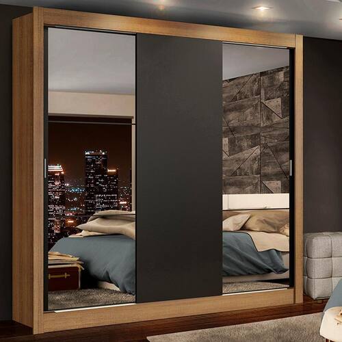 Guarda-Roupa de Casal com ferragens de qualidade, cabideiro metálico e pintura em Poliéster Protetor que confere durabilidade e resistência. As portas de correr possuem trilho superior e inferior em alumínio e sistema de deslizamento suave, garantindo melhor funcionamento. Além disso, os espelhos presentes em duas das portas ampliam o ambiente e são bastante práticos.