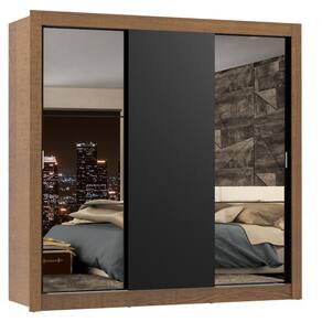 Guarda-Roupa Casal Madesa Lyon Plus 3 Portas de Correr com Espelhos 4 Gavetas - Preto