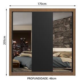 Medidas totais do armário: 205 cm de altura x 170 cm de largura x 46 cm de profundidade.
