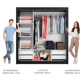 Medidas totais do armário: 205 cm de altura x 170 cm de largura x 46 cm de profundidade.