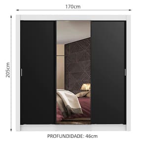 Itens inclusos: - Três (3) prateleiras totalizando seis (6) nichos - Um (1) cabideiro grande - Três (3) portas de correr, sendo duas (2) de madeira com puxadores em PVC e uma (1) com espelho