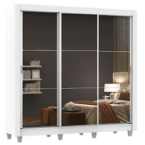 O Guarda-Roupa de Casal com melhor custo benefício do mercado. Ferragens de qualidade, três portas de espelho, cabideiro metálico e pintura em Poliéster Protetor que confere durabilidade e resistência. As portas de correr possuem trilho superior e inferior em alumínio e sistema de deslizamento suave garantindo melhor funcionamento.