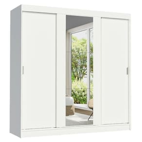 São três portas de correr com trilhos em alumínio e deslizamento suave, que otimizam o espaço do quarto, sem atrapalhar no momento da abertura. Além disso, a porta central conta com espelhos que ampliam o ambiente e são muito práticos no uso diário.