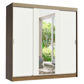 Itens inclusos: - Oito (8) nichos internos - Quatro (4) gavetas internas - Três (3) cabideiros - Três (3) portas de correr, sendo duas (2) de madeira com puxadores em PVC e uma (1) com espelho