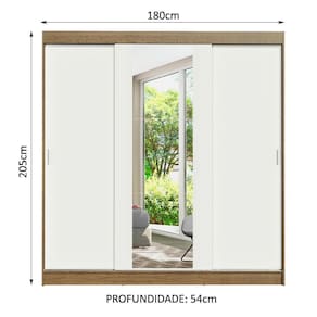 Medidas totais do guarda-roupa: 205 cm de altura x 180 cm de largura x 54 cm de profundidade.