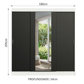 Itens inclusos: - Oito (8) nichos internos - Quatro (4) gavetas internas - Três (3) cabideiros - Três (3) portas de correr, sendo duas (2) de madeira com puxadores em PVC e uma (1) com espelhos