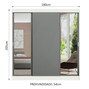 São três portas de correr com trilhos em alumínio e deslizamento suave, que otimizam o espaço do quarto, sem atrapalhar no momento da abertura. Além disso, duas portas contam com espelhos que ampliam o ambiente e são muito úteis no dia a dia.