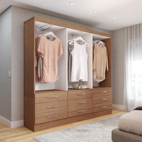 O(a) Guarda-Roupa Casal Madri 6 Portas 9 Gavetas Cinamomo - Loja é produzido em MDP na escala de brilho Fosco, e possui um grau de dificuldade de montagem: Médio.