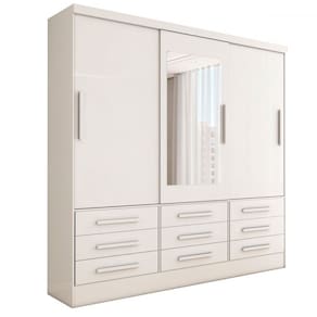 O(a) Guarda-Roupa Casal Maragogi 3 Portas 9 Gavetas com Espelho Branco - Loja é produzido em MDP na escala de brilho Brilho, e possui um grau de dificuldade de montagem: Médio.