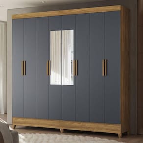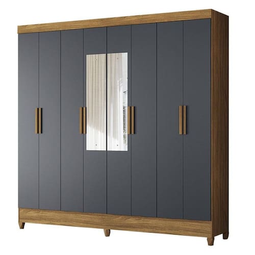 Guarda Roupa Casal Marajó 8 Portas Freijó Cinza com Espelho – Moval