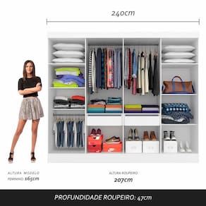 Medidas do Guarda-Roupa Montado: A:207cm | L:240cm | P:47cm