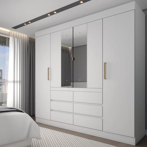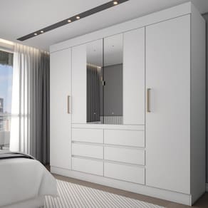 O(a) Guarda-Roupa Casal Marrom 4 Portas 6 Gavetas com Espelho Branco - Loja é produzido em MDP na escala de brilho Semi-Brilho, e possui um grau de dificuldade de montagem: Médio.