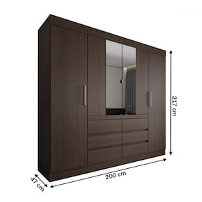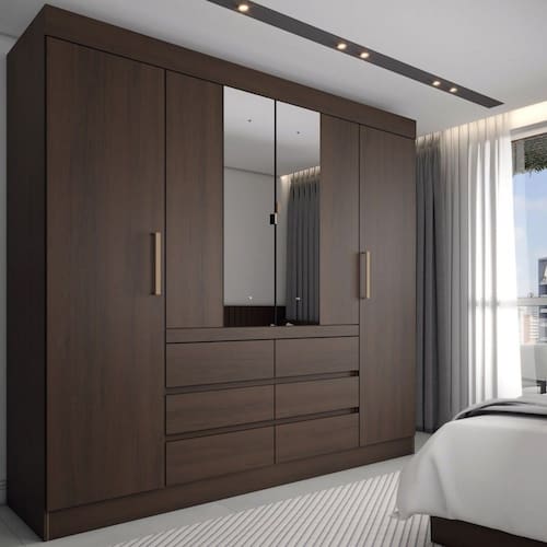 O(a) Guarda-Roupa Casal Marrom 4 Portas 6 Gavetas com Espelho ébano - Pm é produzido em MDP na escala de brilho Semi-Brilho, e possui um grau de dificuldade de montagem: Médio.