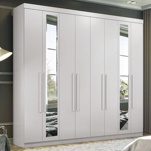 O(a) Guarda-Roupa Casal Master New 8 Portas 4 Gavetas com Espelho Branco 16324 - Santos Andirá é produzido em MDF, MDP e HDF na escala de brilho Semi-Brilho, e possui um grau de dificuldade de montagem: Médio.