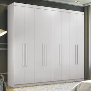 Guarda Roupa Casal Master New 8 Portas Branco - Santos Andirá Branco Guarda Roupa Casal Master New 8 Portas - Santos Andirá O Guarda-Roupa Master Vip New é um espaçoso móvel para casal, projetado para oferecer amplo espaço interno. Ele possui uma divisão interna que atende às necessidades de ambos, com áreas designadas para Ele e para Ela. Com quatro grandes gavetas deslizantes, equipadas com corrediças telescópicas para um movimento suave, e dez prateleiras espaçosas para organizar roupas dobradas, acessórios, calçados e itens de decoração. Além disso, conta com quatro cabideiros/calceiros em alumínio para pendurar roupas de forma organizada. Seu design moderno inclui puxadores em MDF revestido, conferindo um toque charmoso e elegante. Este guarda-roupa é a escolha ideal para decorar o quarto do casal com praticidade e qualidade. ESPECIFICAÇÕES: - Estrutura em MDP - Pintura UV - 8 Portas - Dobradiças metálicas - Puxadores em MDF revestidos nas portas - 4 Gavetas internas - Corrediças telescópicas - 4 Cabideiros em alumínio - Espaço para sapatos - 10 Prateleiras - Maleiro - Amplo espaço interno