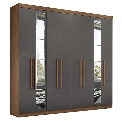 ESPECIFICAÇÕES: Estrutura em MDP Pintura UV 8 Portas Dobradiças metálicas Puxadores em MDF revestidos nas portas 4 Gavetas internas Corrediças telescópicas 4 Cabideiros em alumínio Espaço para sapatos 10 Prateleiras Maleiro Aplicação de espelho Amplo espaço interno