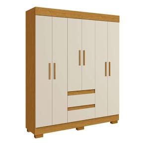 que tal o guarda-roupa maya? com o guarda-roupa maya você leva o aliado perfeito para seu dormitório completo e organizado. além de ter 6 portas e 2 gavetas para te ajudar na organização de itens do dia a dia, o móvel traz um visual sóbrio e atemporal, destacando a coloração elegante e os puxadores alongados em mdf. ah, notou que o espaço interno é na cor linho? um grande diferencial para dar aquele toque extra de charme ao seu quarto dos sonhos ;) Marca: Modern