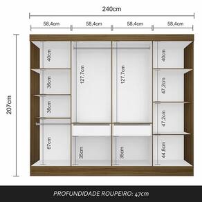 Medidas do Guarda-roupa Montado: A:207cm | L:240cm | P:47cm