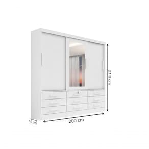 Com suas 3 portas de correr, o Guarda Roupa Meridian oferece fácil acesso ao interior do móvel, economizando espaço no ambiente. As portas, a moldura e as frentes das gavetas são feitas em MDF, garantindo durabilidade e um acabamento sofisticado.