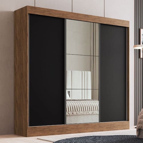 O(a) Guarda-Roupa Casal Michigan 3 Portas 4 Gavetas 100% Mdf com Espelho Castanho/Preto - Doripel Móveis é produzido em MDF na escala de brilho Semi-Brilho, e possui um grau de dificuldade de montagem: Médio.