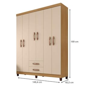 Guarda Roupa Casal Modena 6 Portas e Armário Multiuso Egito Carvalho Americano Off White Incorplac