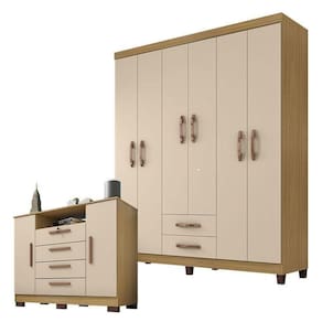 Guarda Roupa Casal Módena com Cômoda Madri Carvalho Americano Off White Incorplac