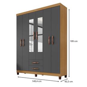 Guarda Roupa Casal Modena com Espelho 6 Portas Carvalho Americano Grafite - Incorplac