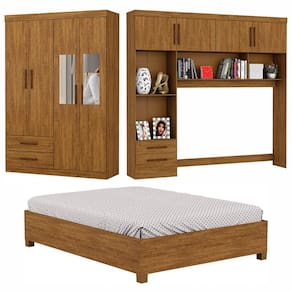 O Guarda Roupa Casal Modulado 4 Portas Hercules 4 Portas, com espelho e ideal para otimizar o espaco do ambiente e deixar tudo organizado. Possui Maleiros, 2 nichos externos, 3 prateleiras, 8 portas, 4 gavetas com corredicas metalicas. Possui pintura UV, que oferece ao produto resistencia e durabilidade. A Cama Casal com 1,93 de comprimento e 1,44m de largura e a melhor opcao para trazer conforto e elegancia ao seu quarto. Produzida em MDP, com estrado de madeira reflorestada e pes de PVC garante durabilidade e resistencia ao movel. Acabamento resistente com impressao UV e verniz de alta duracao. Ideal para colchoes de 1380mm. Nao acompanha o colchao.