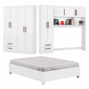 O Guarda Roupa Casal Modulado 5 Portas Hercules 4 Portas e ideal para otimizar o espaco do ambiente e deixar tudo organizado. Possui Maleiros, 2 nichos externos, 3 prateleiras, 9 portas, 4 gavetas com corredicas metalicas. Possui pintura UV, que oferece ao produto resistencia e durabilidade. A Cama Casal com 1,93 de comprimento e 1,44m de largura e a melhor opcao para trazer conforto e elegancia ao seu quarto. Produzida em MDP, com estrado de madeira reflorestada e pes de PVC garante durabilidade e resistencia ao movel. Acabamento resistente com impressao UV e verniz de alta duracao. Ideal para colchoes de 1380mm. Nao acompanha o colchao.