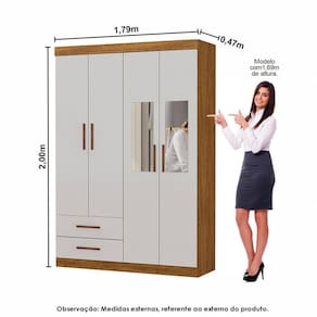 Guarda Roupa Casal Modulado 5 Portas Hercules 4 Portas e 4 Gavetas com Espelho Cinamomo/Off White