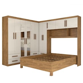 O(a) Guarda-Roupa Casal Modulado com Cama Belgrado 11 Portas 6 Gavetas com Espelho Cinamomo/Off White - Loja é produzido em MDP na escala de brilho Fosco e Semi-Brilho, e possui um grau de dificuldade de montagem: Médio.