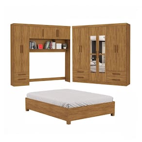 Guarda-Roupa Casal Modulado com Cama Hércules 11 Portas 6 Gavetas com Espelho Cinamomo - Carioca Móveis - Marrom