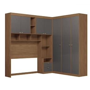 Guarda-Roupa Casal Modulado Lugano 7 Portas 4 Gavetas Jatoba/Grafite - Santos Andirá - Cinza