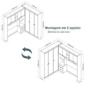Conteúdo da Embalagem: 1 Guarda-Roupa, 1 Modulo Kit Ferragem e Manual de Montagem